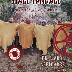 Programme : Je vous propose une formation complète sur le tannage au gras et fumé (cuir type buckskin et fourrure) À l’aide d’outils préhistoriques (silex, os…) et modernes. Une approche théorique et pratique vous sera proposée sur les différentes méthodes de tannage au gras (cervelle et jaune d’œuf). Chaque participant repartira avec ses deux […]