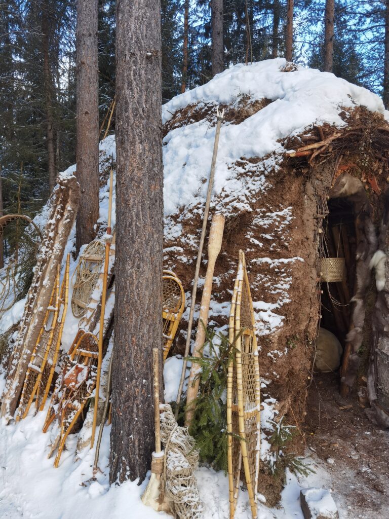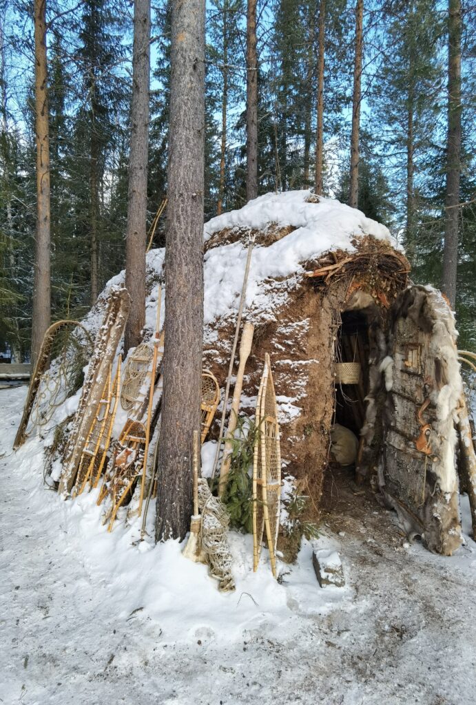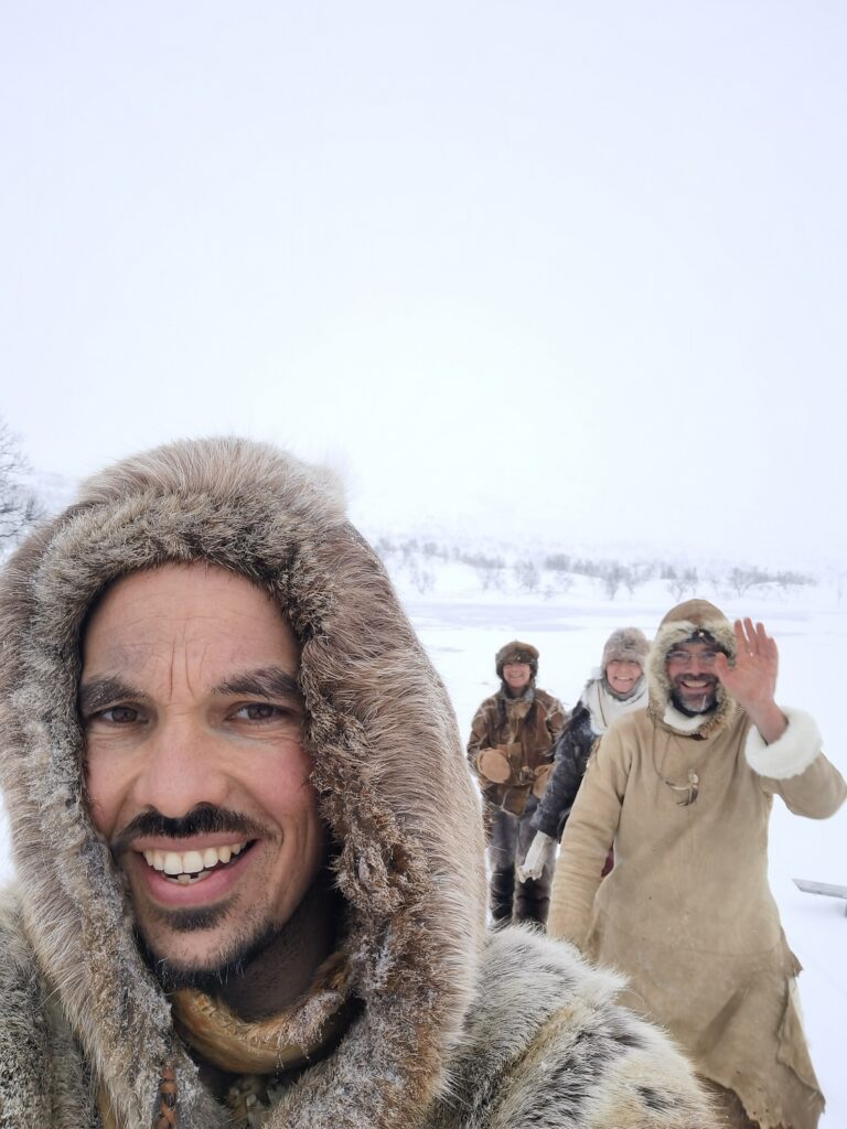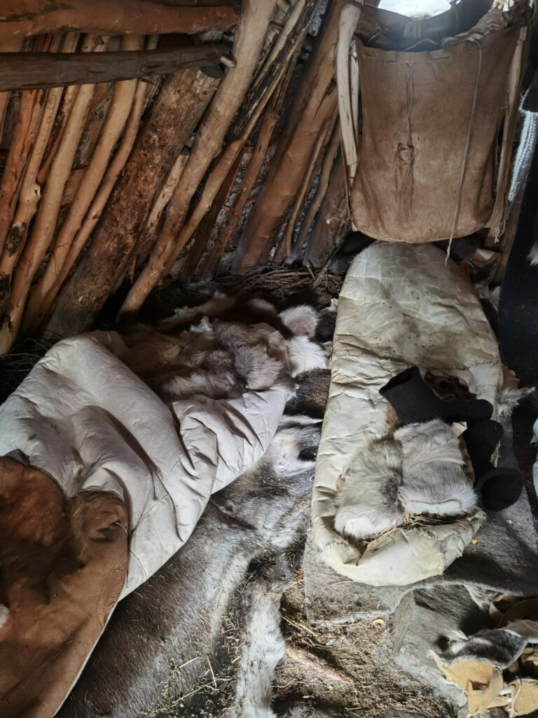Le premier jour, fut celui de l’installation dans les habitats traditionnels Saami appelés Gohati. Cette structure en bois couverte d’écorce de bouleau et de terre est proche de ce que les populations du paléolithique auraient pu concevoir. Ils sont relativement sombres et enfumés mais offrent un lieu de protection idéal pour les conditions extrêmement froides.